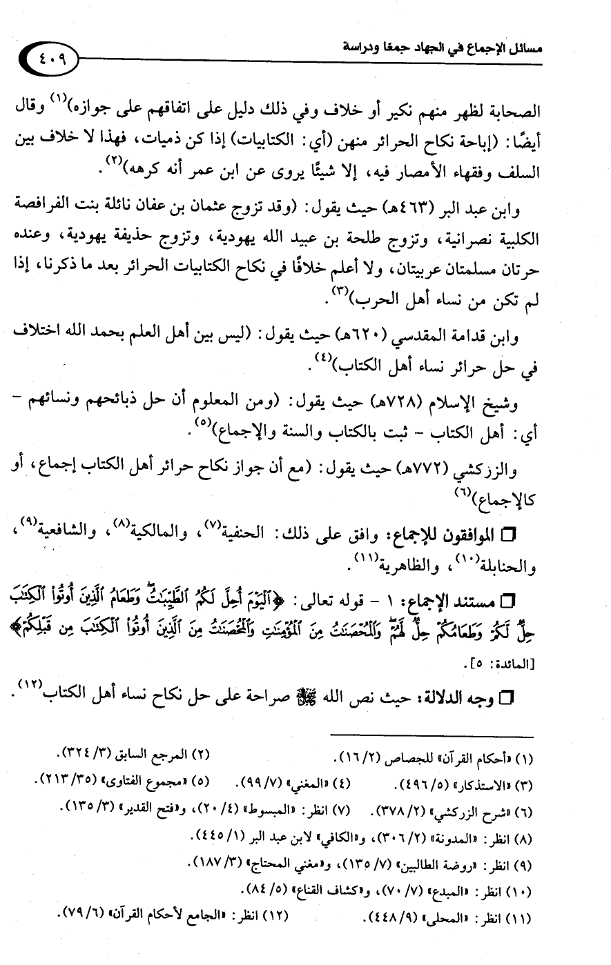 والزركشي (772 هـ) حيث يقول: (مع أن جواز نكاح حرائر أهل الكتاب إجماع، أو كالإجماع) (¬6)