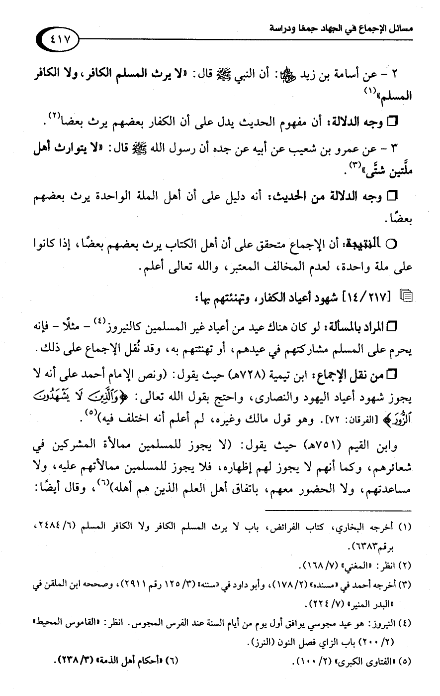 [217/ 14] شهود أعياد الكفار، وتهنئتهم بها: