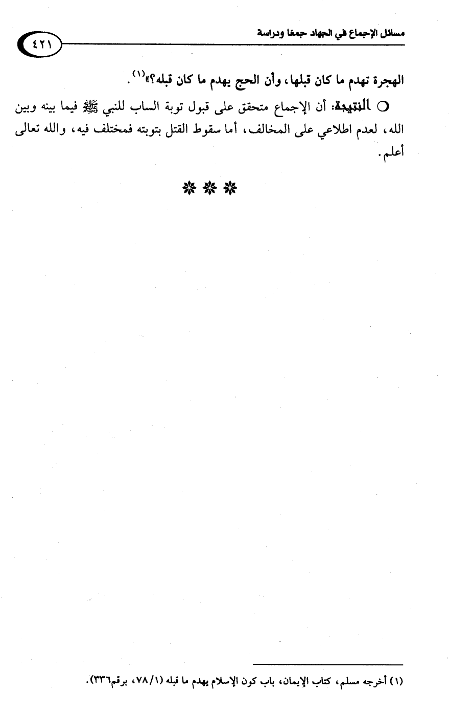 (¬1) أخرجه مسلم، كتاب الإيمان، باب كون الإسلام يهدم ما قبله (1/ 78، برقم 336).