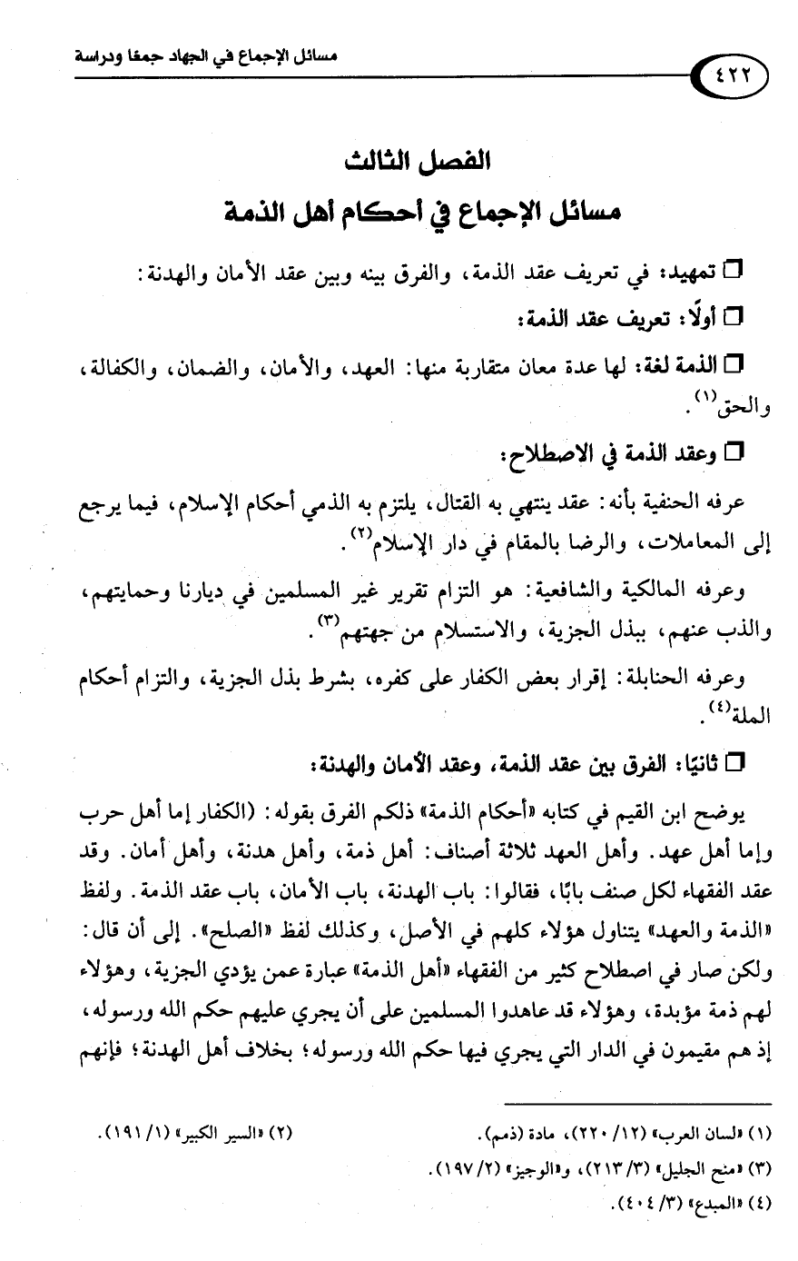 الفصل الثالث: مسائل الإجماع في أحكام أهل الذمة