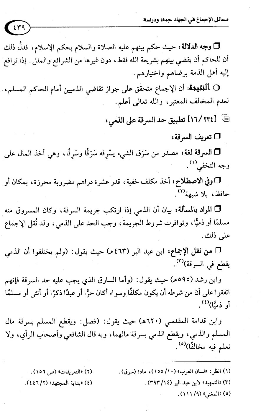 • من نقل الإجماع: ابن عبد البر (463 هـ) حيث يقول: (ولم يختلفوا أن الذمي يقطع في السرقة) (¬3).