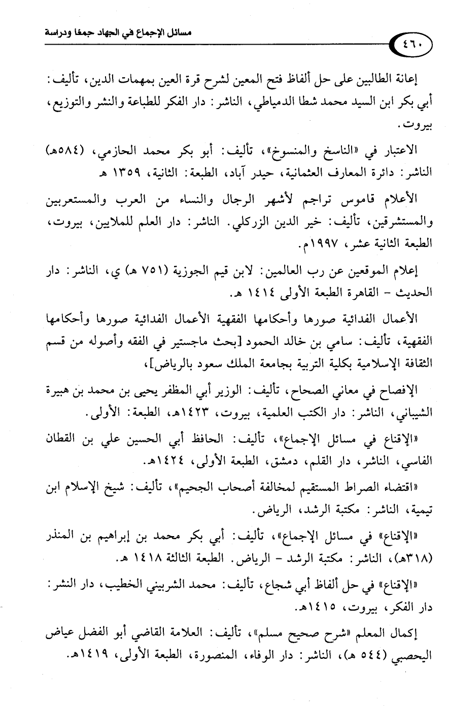 "الإقناع في مسائل الإجماع"، تأليف: الحافظ أبي الحسين علي بن القطان الفاسي، الناشر، دار القلم، دمشق، الطبعة الأولى، 1424 هـ.