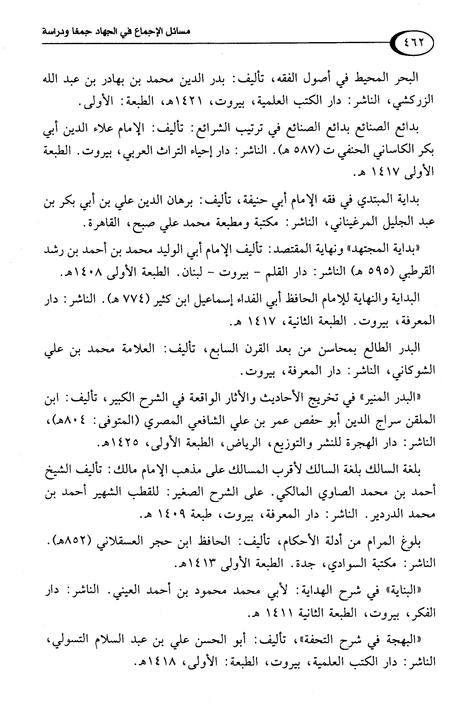 "بداية المجتهد" ونهاية المقتصد: تأليف الامام أبي الوليد محمد بن أحمد بن رشد القرطبي (595 هـ) الناشر: دار القلم - بيروت - لبنان. الطبعة الأولى 1408 هـ.