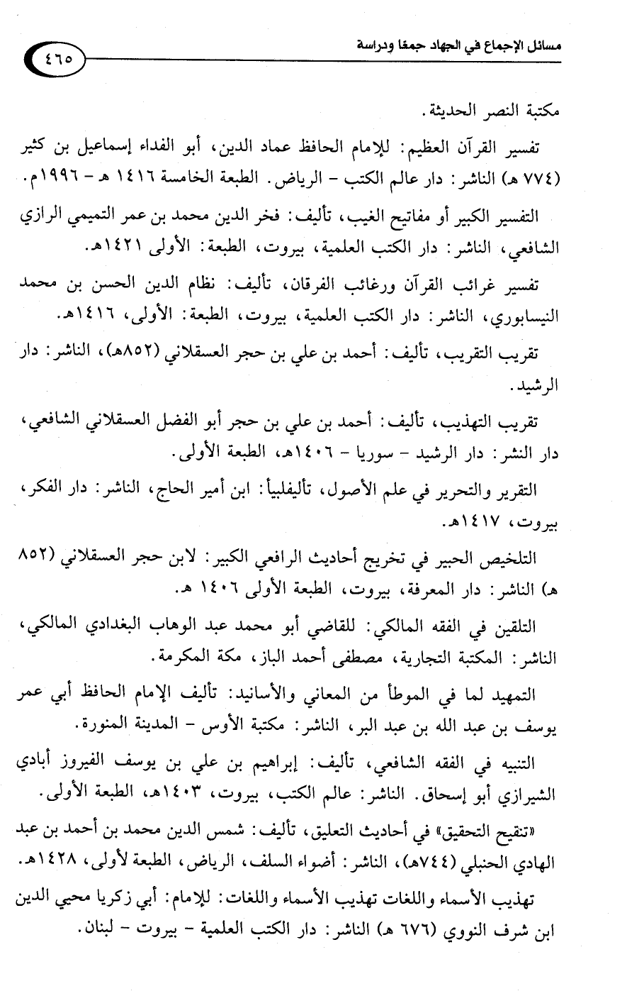 التلخيص الحبير في تخريج أحاديث الرافعي الكبير: لابن حجر العسقلاني (852 هـ) الناشر: دار المعرفة، بيروت، الطبعة الأولى 1406 هـ.