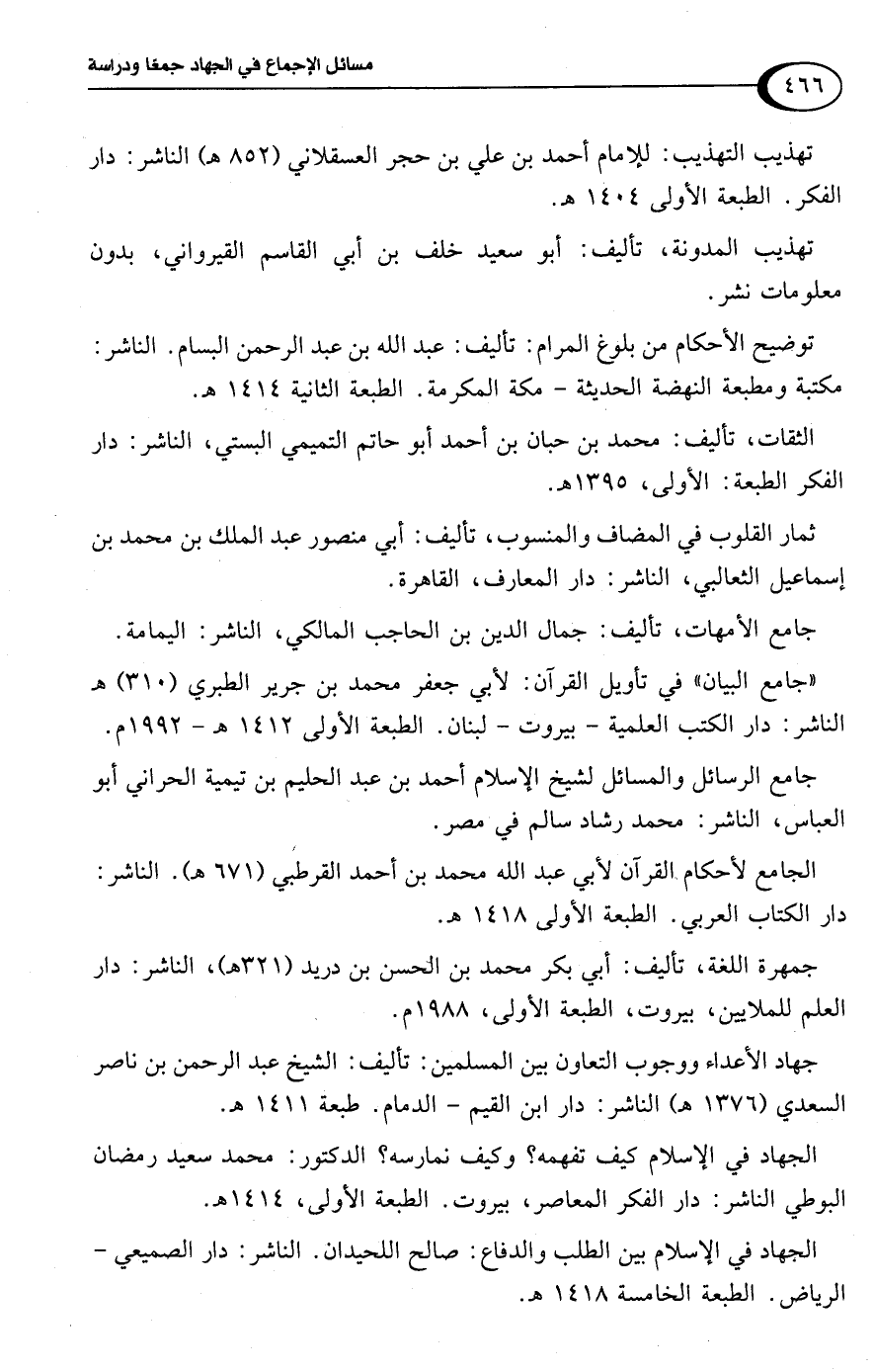 الجهاد في الإسلام بين الطلب والدفاع: صالح اللحيدان. الناشر: دار الصميعي - الرياض. الطبعة الخامسة 1418 هـ.
