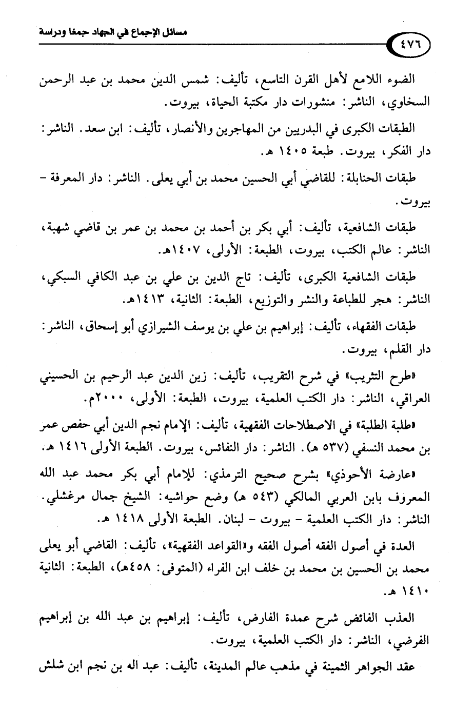 "طلبة الطلبة" في الاصطلاحات الفقهية، تأليف: الإمام نجم الدين أبي حفص عمر بن محمد النسفي (537 هـ). الناشر: دار النفائس، بيروت. الطبعة الأولى 1416 هـ.