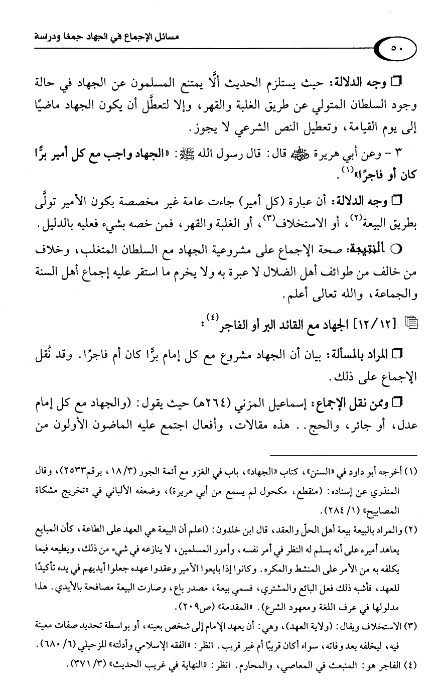 [12/ 12] الجهاد مع القائد البر أو الفاجر (¬4):