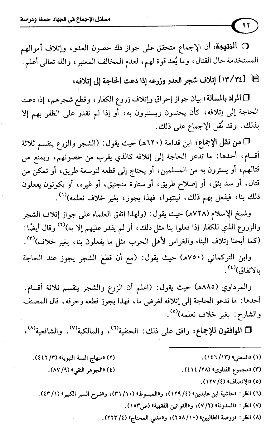 [34/ 13] إتلاف شجر العدو وزرعه إذا دعت الحاجة إلى إتلافه: