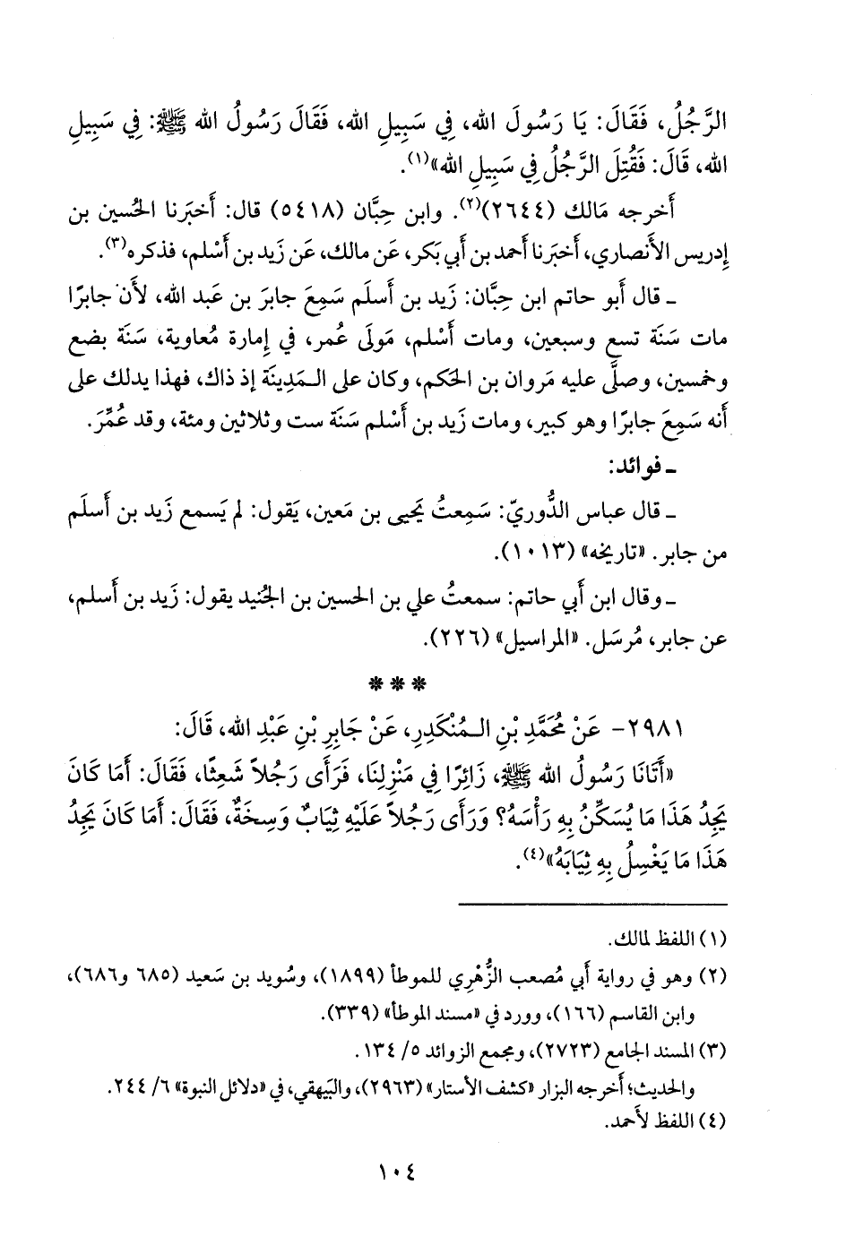 - وقال ابن أبي حاتم: سمعت علي بن الحسين بن الجنيد يقول: زيد بن أسلم، عن جابر، مرسل. «المراسيل» (٢٢٦).