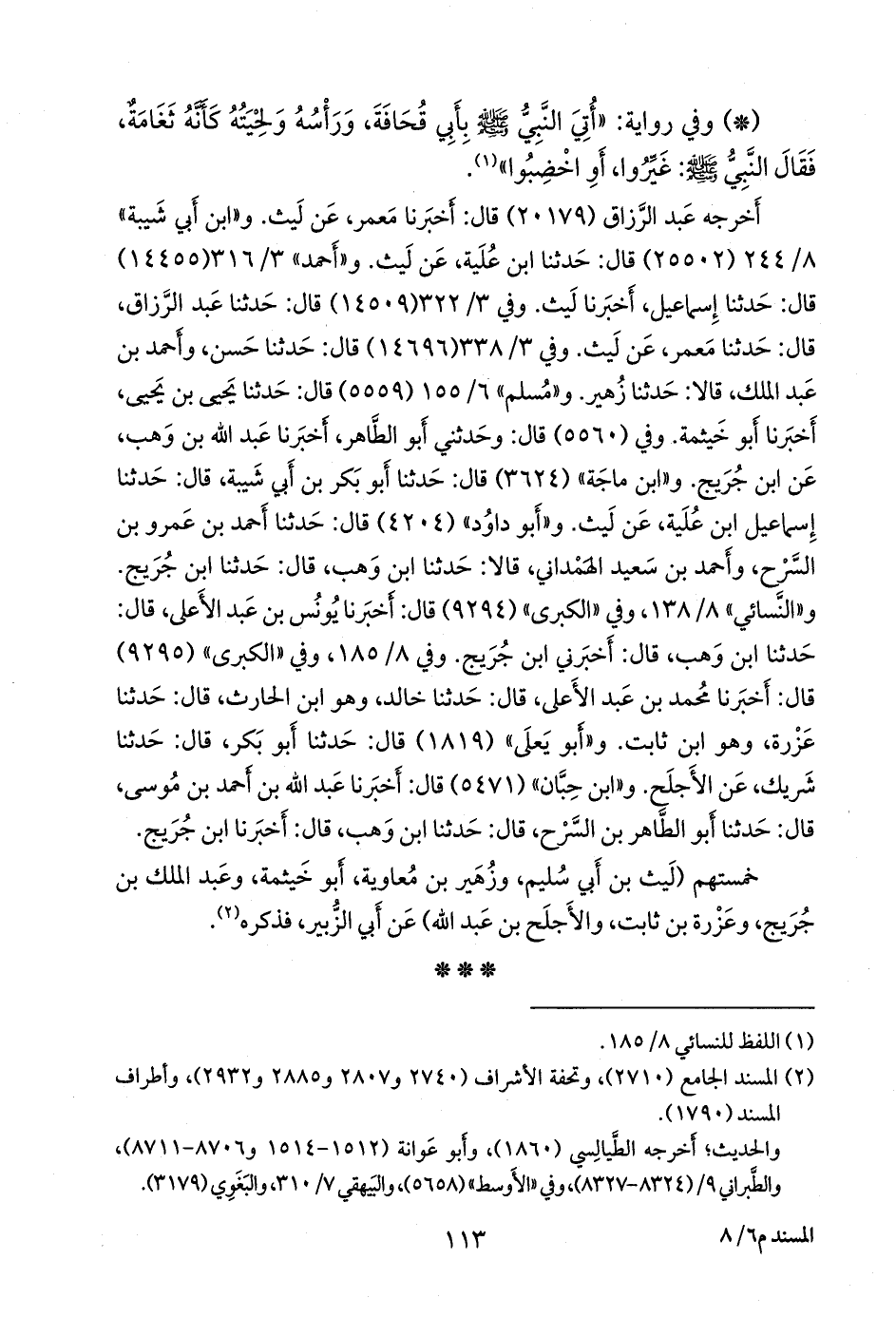 (¬١) المسند الجامع (٢٧١٠)، وتحفة الأشراف (٢٧٤٠ و ٢٨٠٧ و ٢٨٨٥ و ٢٩٣٢)، وأطراف المسند (١٧٩٠).