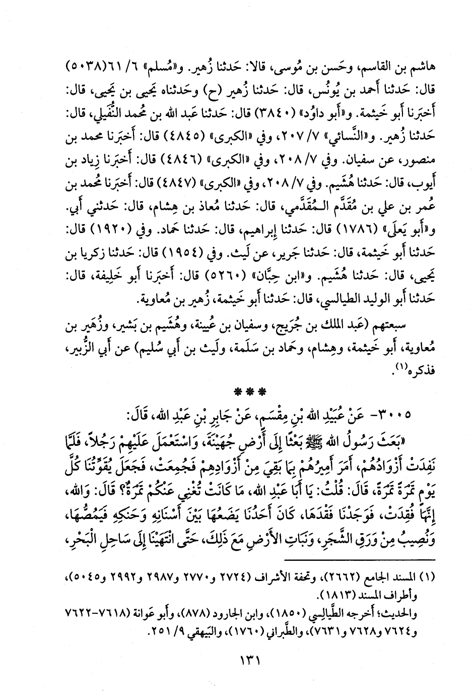 ٣٠٠٥ - عن عُبيد الله بن مِقسَم، عن جابر بن عبد الله، قال: