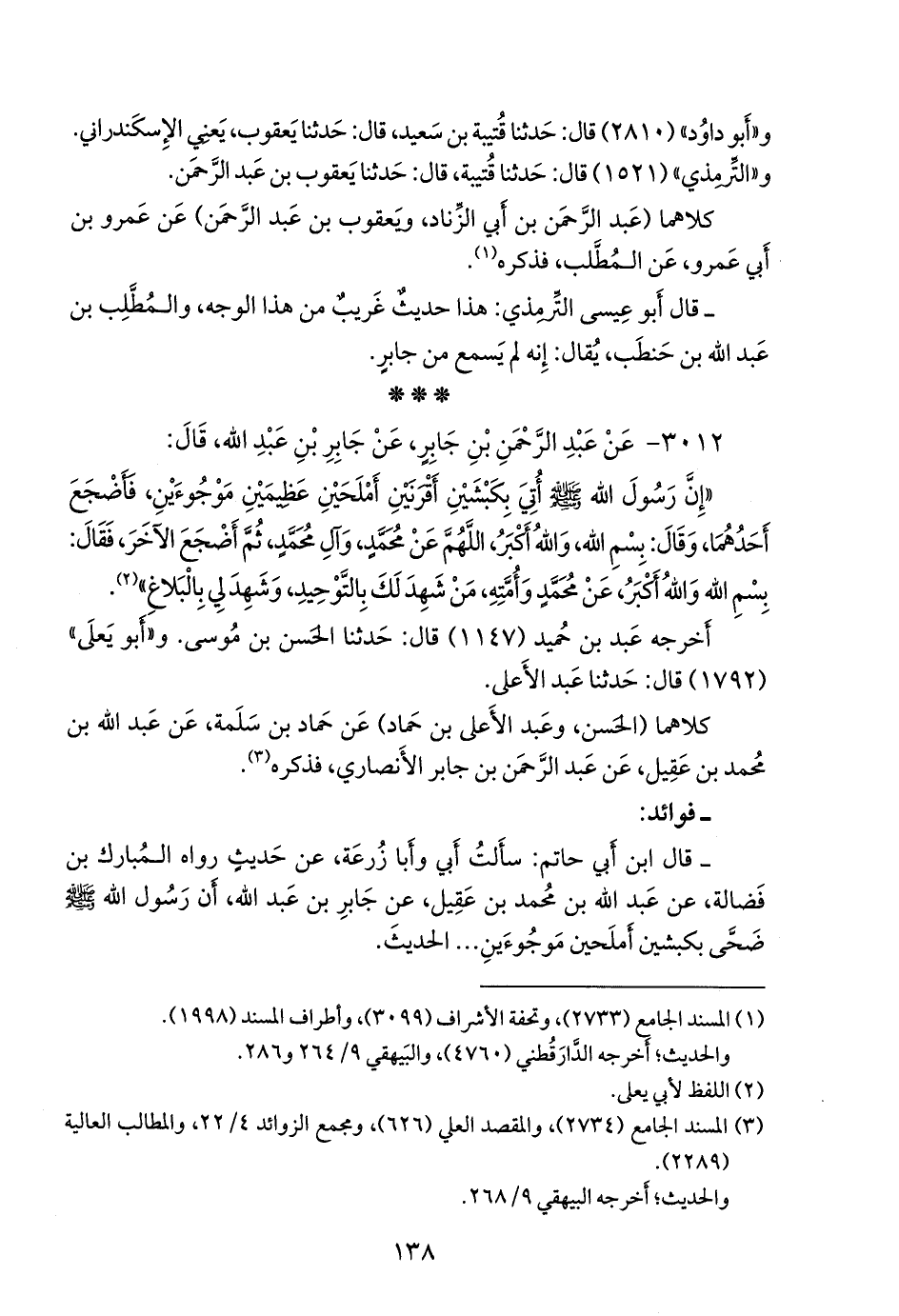 كلاهما (الحسن، وعبد الأعلى بن حماد) عن حماد بن سلمة، عن عبد الله بن محمد بن عَقيل، عن عبد الرَّحمَن بن جابر الأَنصاري، فذكره (¬٢).