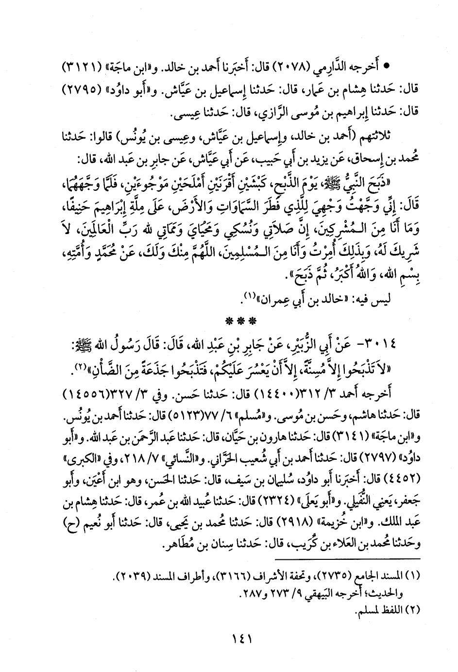 ثلاثتهم (أحمد بن خالد، وإسماعيل بن عياش، وعيسى بن يونس) عن محمد بن إسحاق، عن يزيد بن أبي حبيب، عن أبي عياش، عن جابر بن عبد الله، قال: