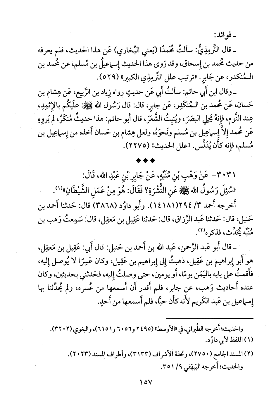 - أخرجه عبد الرزاق (١٩٧٦٢) قال: أخبرنا عقيل بن معقل، عن همام بن مُنَبِّه، قال: سئل جابر بن عبد الله عن النشرة (¬٣)؟ فقال: من عمل الشيطان. «موقوف».