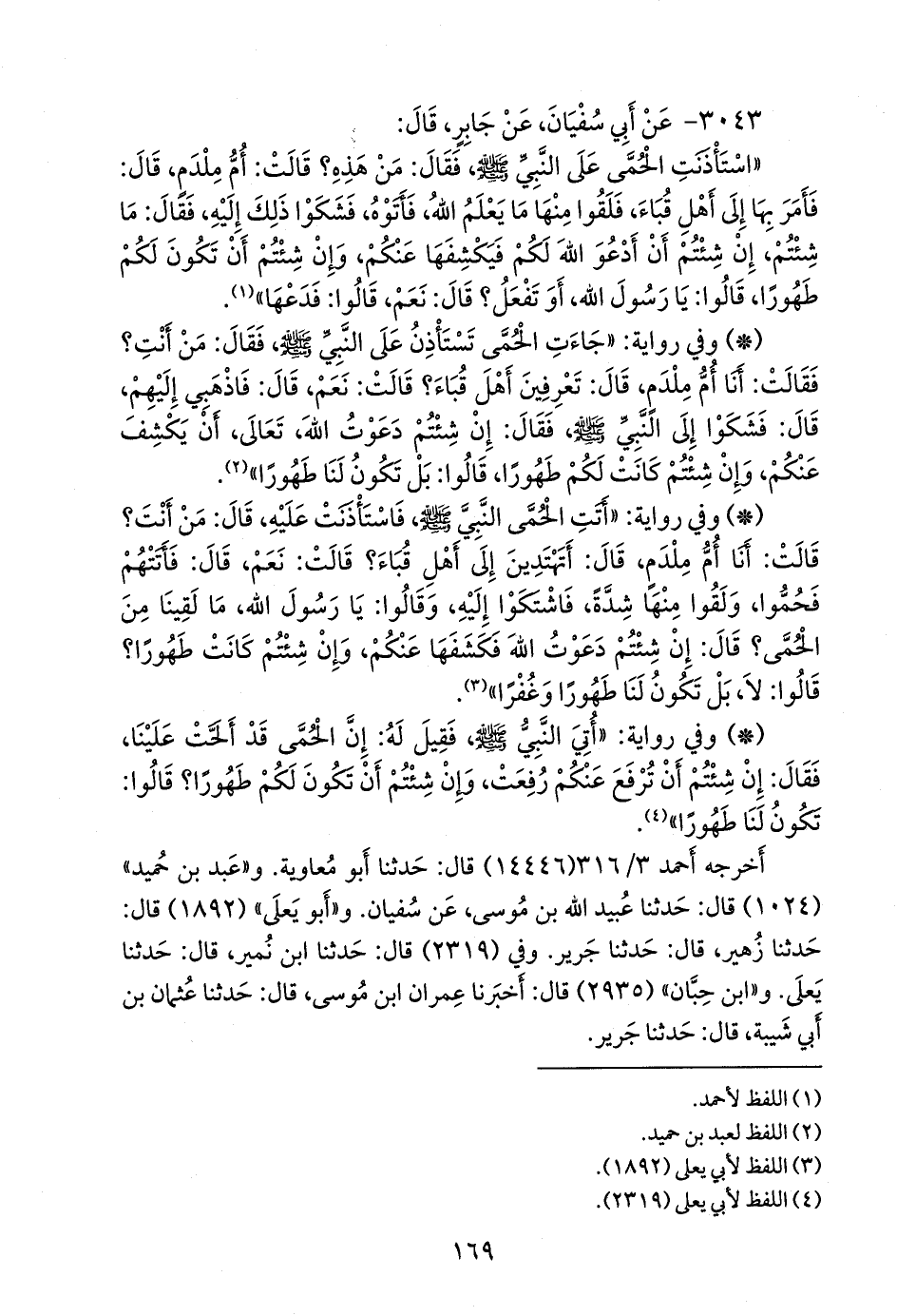 أخرجه أحمد (١٤٤٤٦) قال: حدثنا أَبو معاوية. و «عَبد بن حُميد» (١٠٢٤) قال: حدثنا عُبيد الله بن موسى، عن سفيان. و «أَبو يَعلى» (١٨٩٢) قال: حدثنا زهير، قال: حدثنا جَرير. وفي (٢٣١٩) قال: حدثنا ابن نُمير، قال: حدثنا يَعلى. و «ابن حِبَّان» (٢٩٣٥) قال: أخبرنا عمران بن موسى، قال: حدثنا عثمان بن أبي شيبة، قال: حدثنا جَرير.