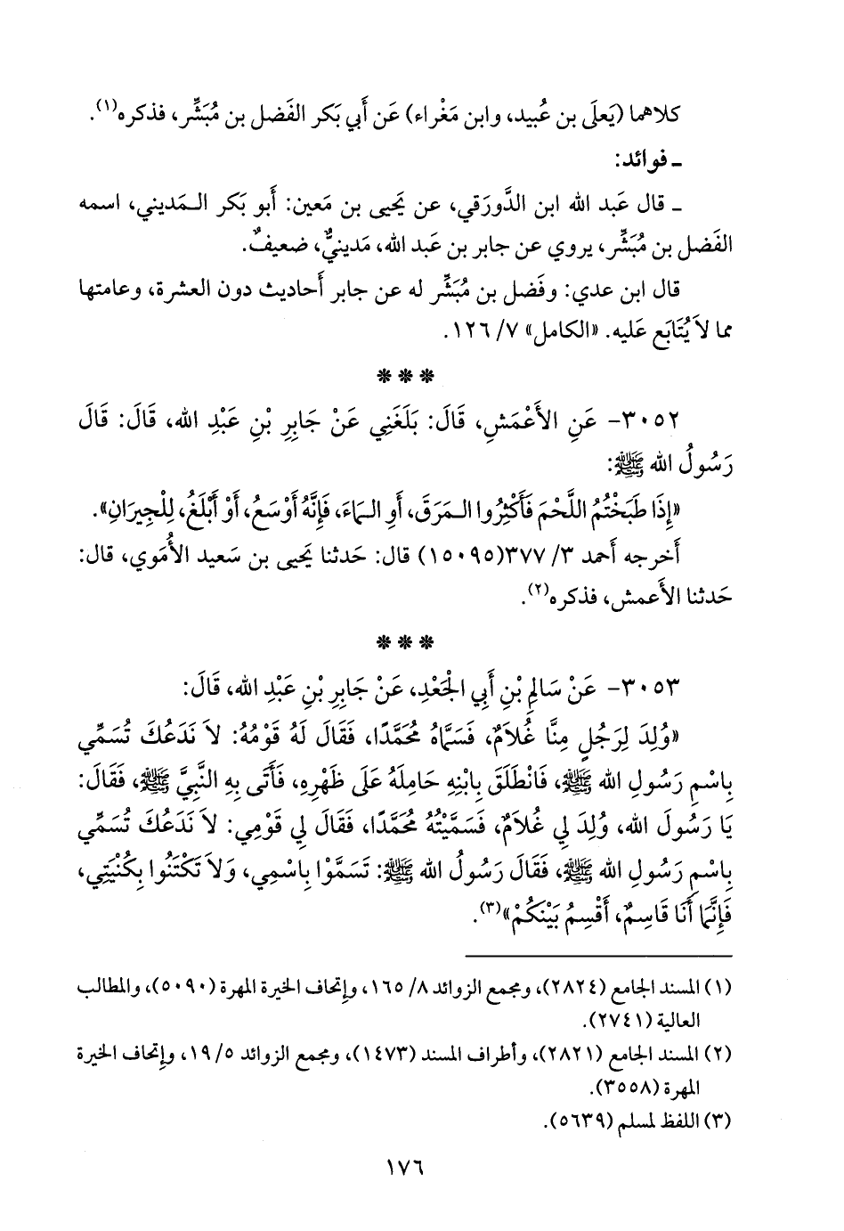 ٣٠٥٣ - عن سالم بن أبي الجعد، عن جابر بن عبد الله، قال: