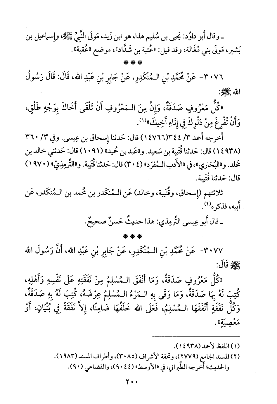 ٣٠٧٧ - عن محمد بن المُنكدِر، عن جابر بن عبد الله، أن رسول الله صَلى الله عَليه وسَلم قال: