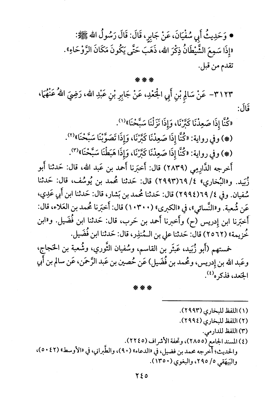 - وفي رواية: «كنا إذا صعدنا كبرنا، وإذا تصوبنا سبحنا» (¬٢).