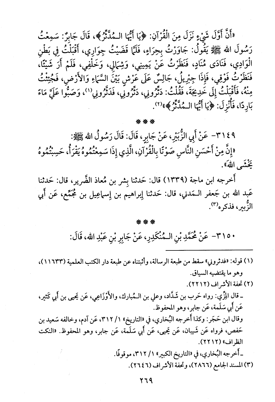 ٣١٤٩ - عن أبي الزبير، عن جابر، قال: قال رسول الله صَلى الله عَليه وسَلم: