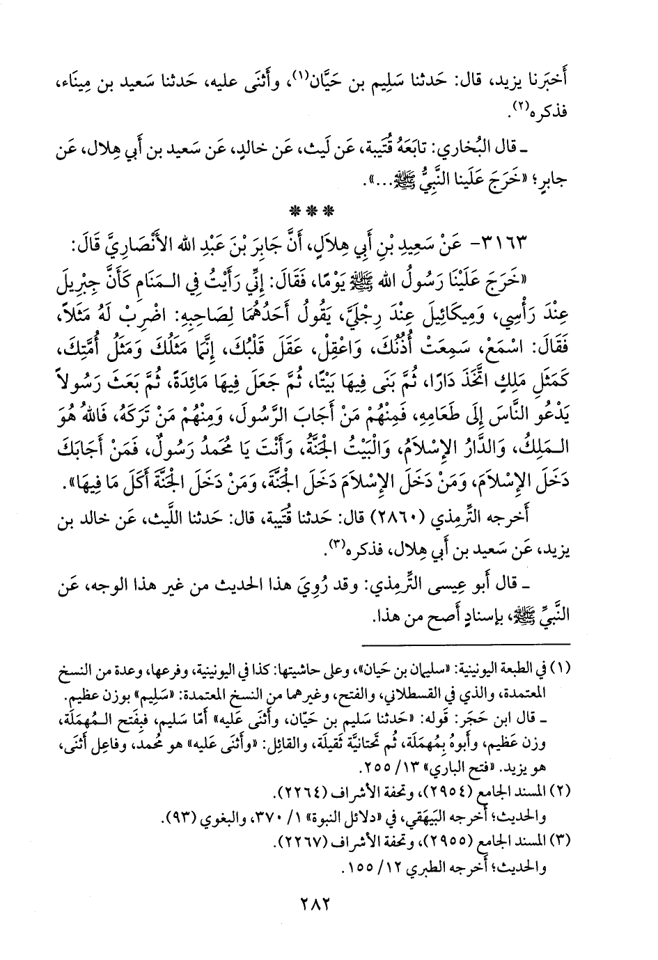 ٣١٦٣ - عن سعيد بن أبي هلال، أن جابر بن عبد الله الأَنصاري قال: