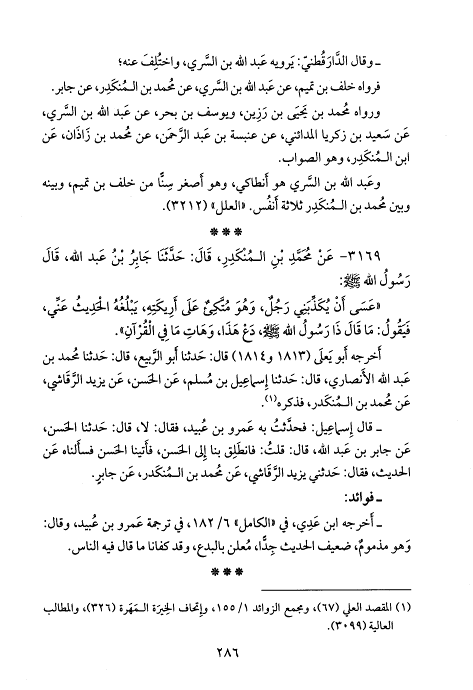 ٣١٦٩ - عن محمد بن المُنكدِر، قال: حدثنا جابر بن عبد الله، قال رسول الله صَلى الله عَليه وسَلم: