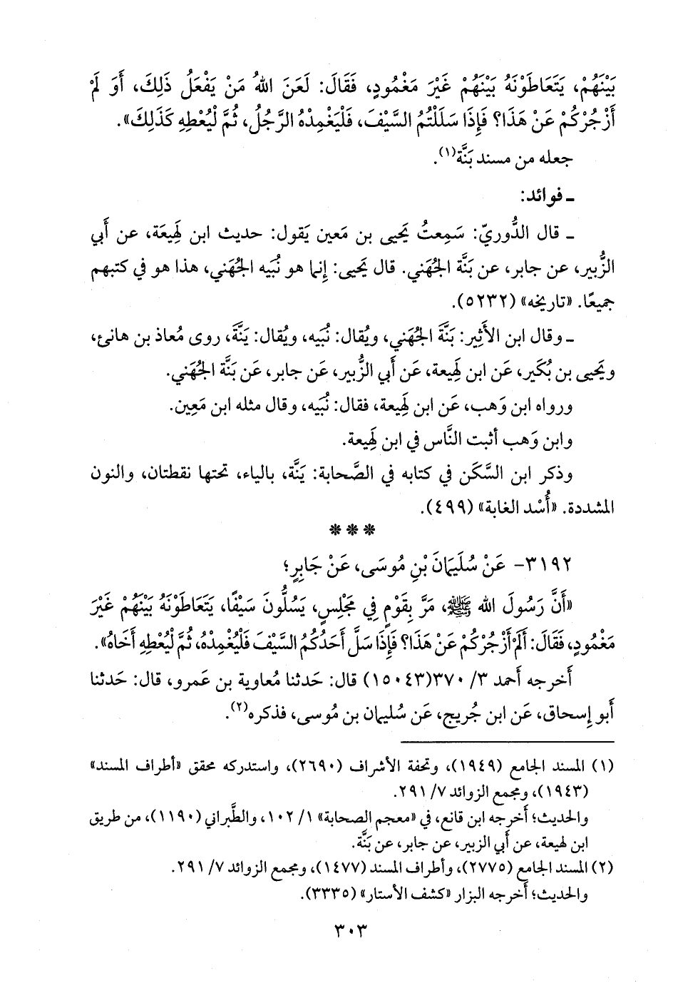 - قلنا إِسناده ضعيفٌ؛ قال عباس الدُّوري: سمعت يحيى بن مَعين يقول: حديث ابن لَهِيعة، عن أبي الزبير، عن جابر، عن بنة الجهني. قال يحيى: إنما هو نبيه الجهني، هذا هو في كتبهم جميعا. «تاريخه» (٥٢٣٢).