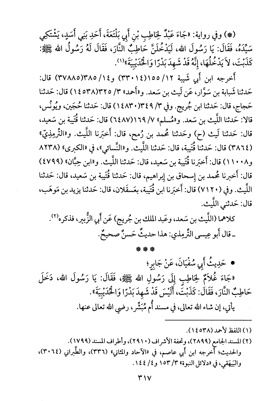 - وفي رواية: «لن يدخل النار رجل شهد بَدرًا والحُدَيبيَة».