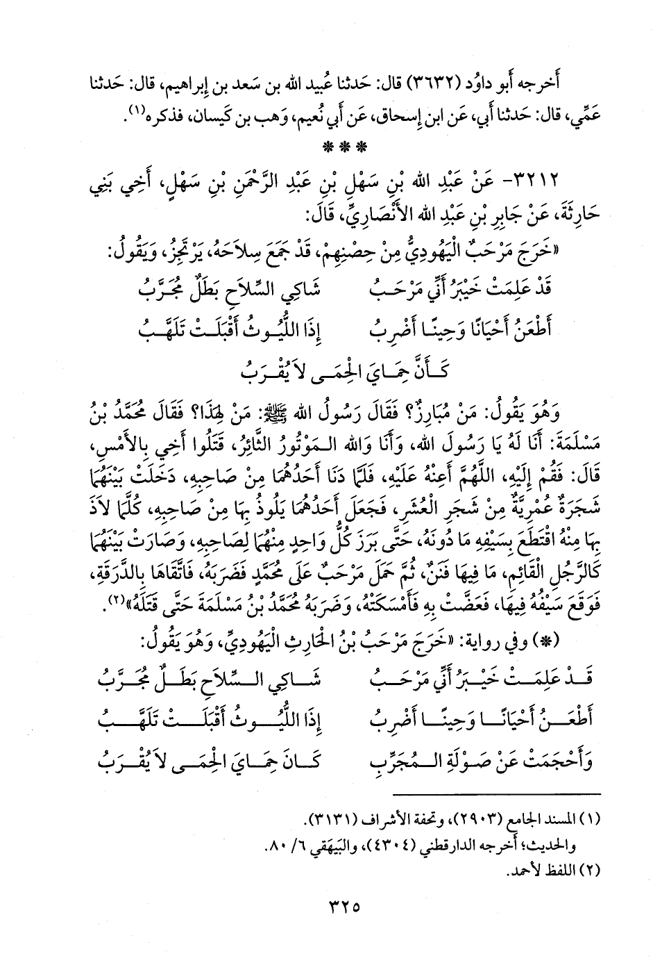 «خرج مرحب اليهودي من حصنهم، قد جمع سلاحه، يرتجز، ويقول: