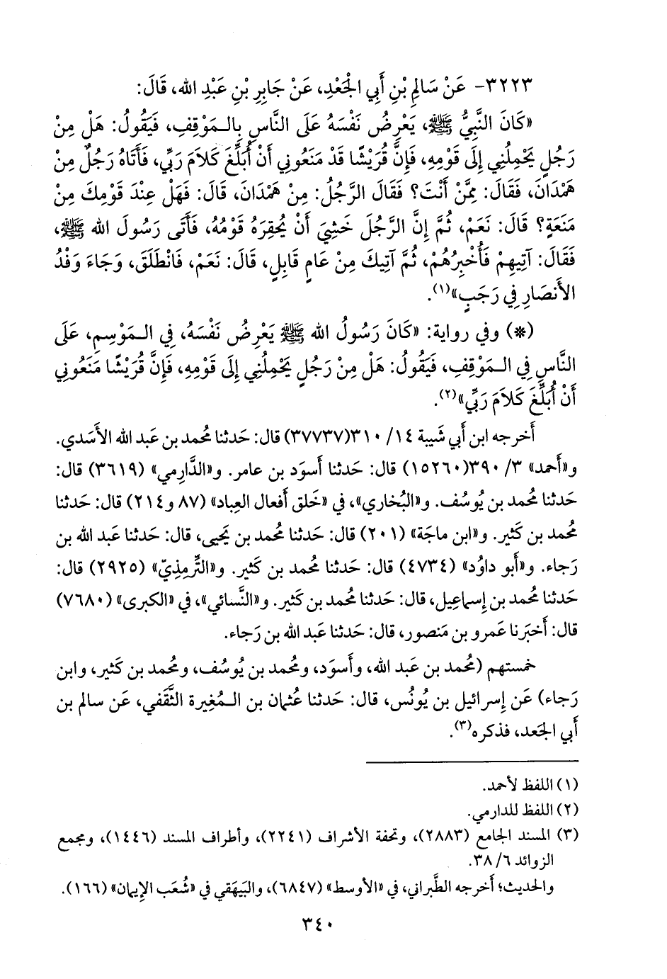 ٣٢٢٣ - عن سالم بن أبي الجعد، عن جابر بن عبد الله، قال: