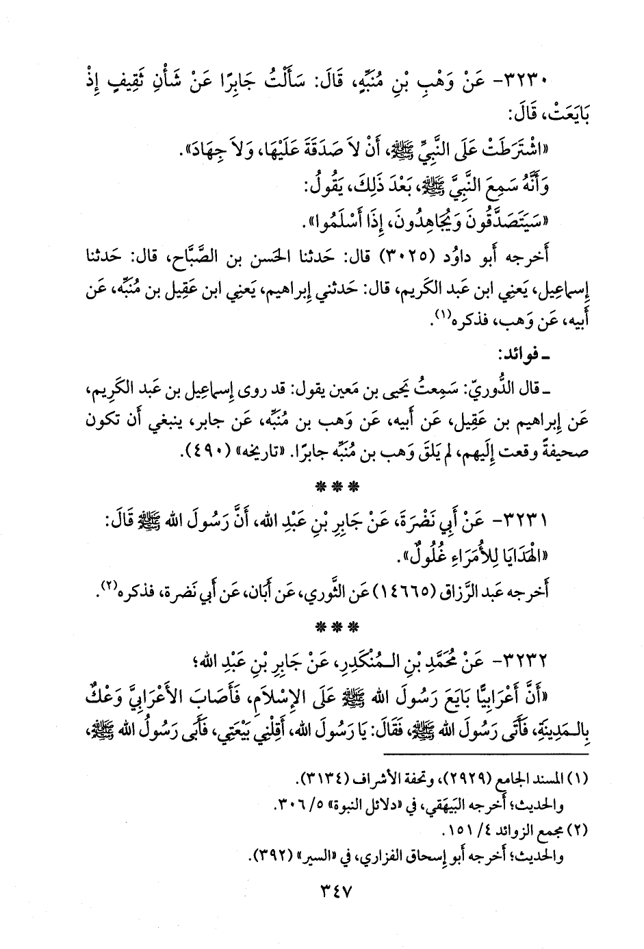 ٣٢٣٠ - عن وَهب بن مُنَبِّه، قال: سألت جابرا عن شأن ثقيف إذ بايعت، قال: