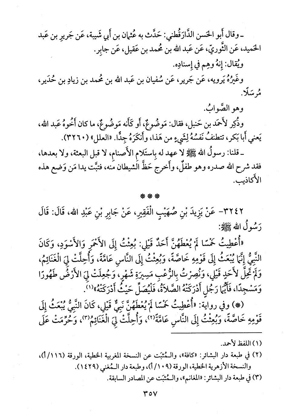 ٣٢٤٢ - عن يزيد بن صُهَيب الفقير، عن جابر بن عبد الله، قال: قال رسول الله صَلى الله عَليه وسَلم: