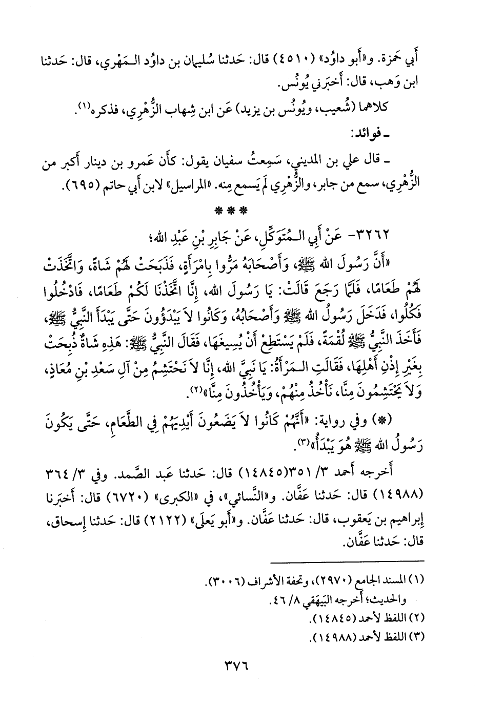 كلاهما (عبد الصمد بن عبد الوارث، وعفان بن مسلم) عن حماد بن سلمة، عن حميد الطويل، عن أبي المتوكل الناجي، فذكره (¬٣).
