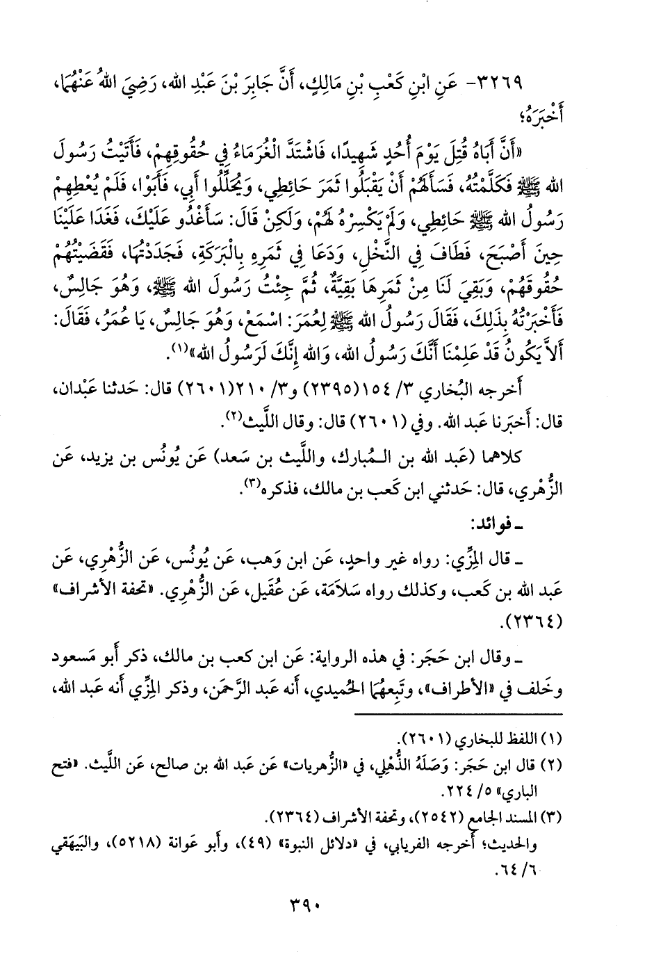 ٣٢٦٩ - عن ابن كعب بن مالك، أن جابر بن عبد الله، رضي الله عنهما، أخبره؛