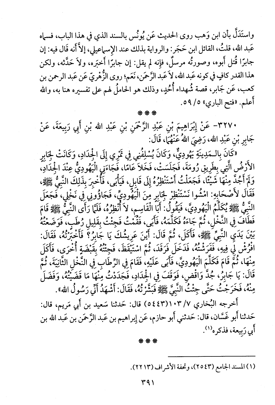 ٣٢٧٠ - عن إبراهيم بن عبد الرَّحمَن بن عبد الله بن أبي ربيعة، عن جابر بن عبد الله، رضي الله عنهما، قال:
