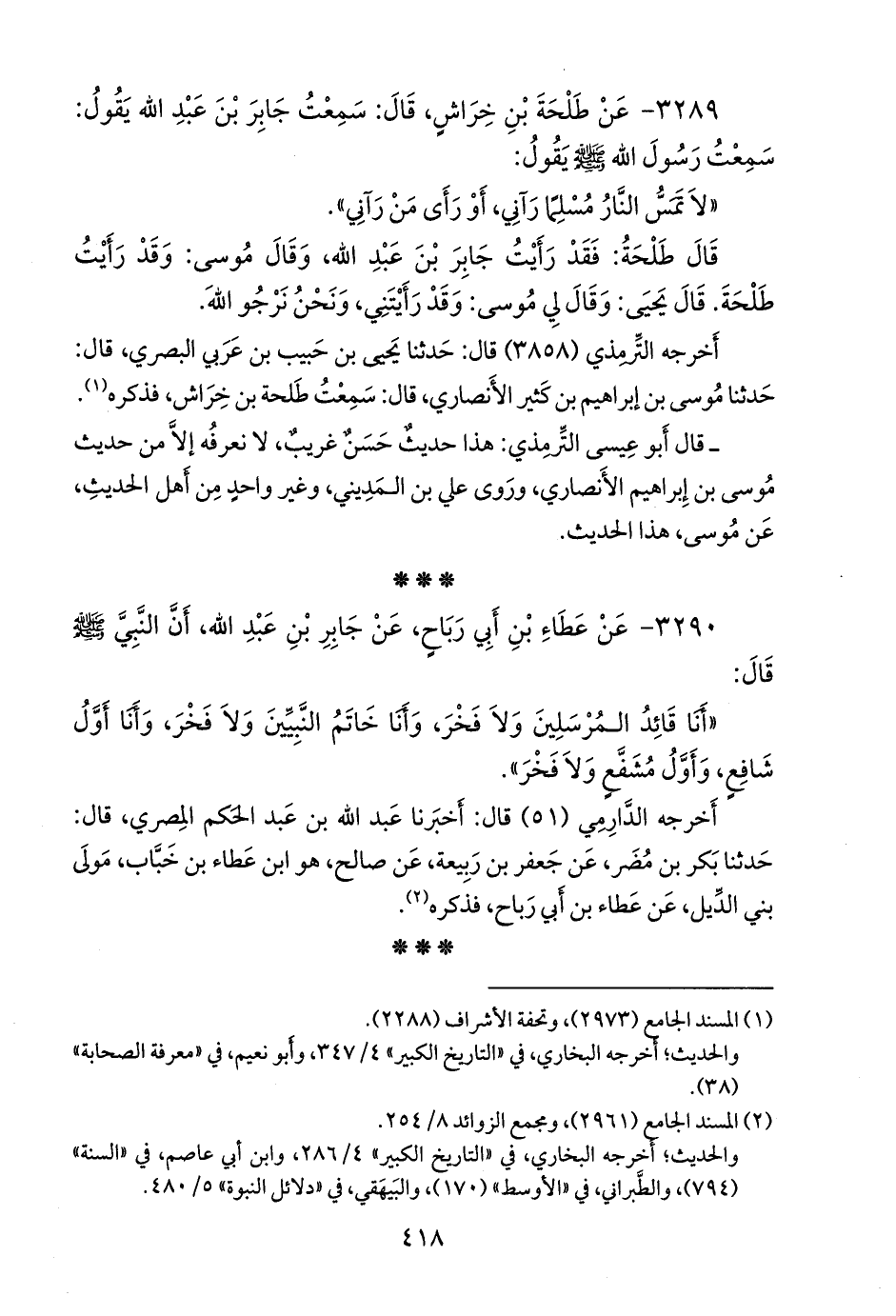 ٣٢٨٩ - عن طلحة بن خراش، قال: سمعت جابر بن عبد الله يقول: سمعت رسول الله صَلى الله عَليه وسَلم يقول: