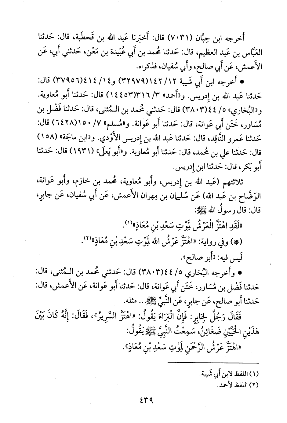 - وفي رواية: «اهتز عرش الله لموت سعد بن معاذ» (¬١).