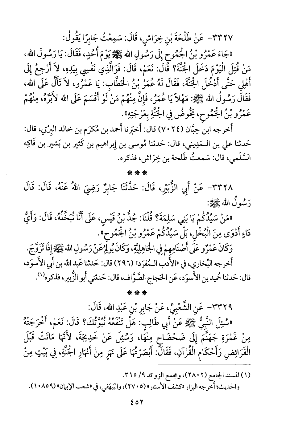 ٣٣٢٩ - عن عامر بن شَراحيل الشَّعبي، عن جابر بن عبد الله، قال: