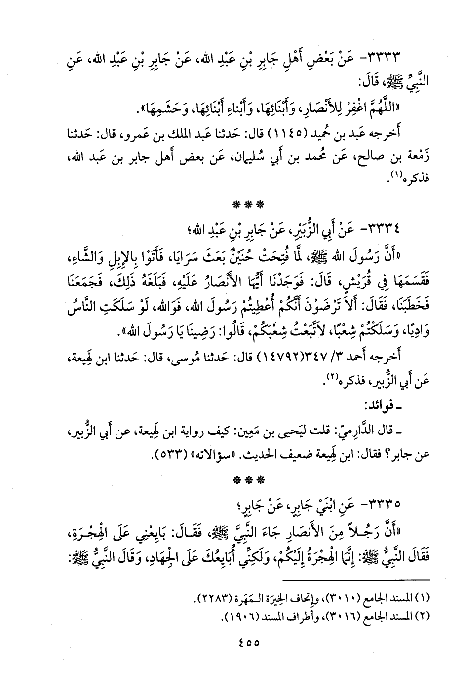 ٣٣٣٣ - عن بعض أهل جابر بن عبد الله، عن جابر بن عبد الله، عن النبي صَلى الله عَليه وسَلم قال: