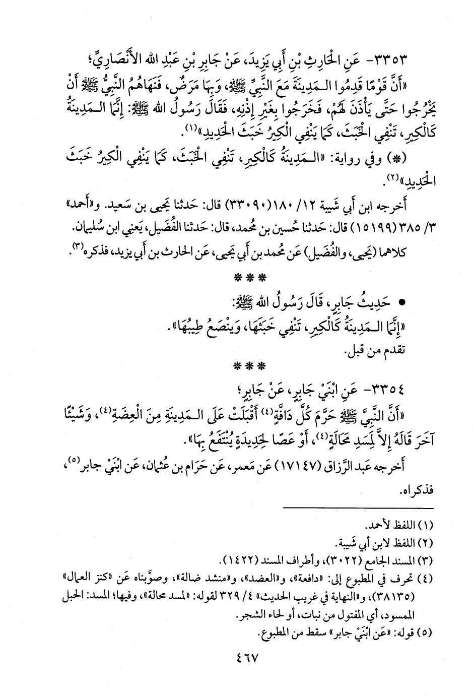 ٣٣٥٣ - عن الحارث بن أبي يزيد، عن جابر بن عبد الله الأَنصاري؛