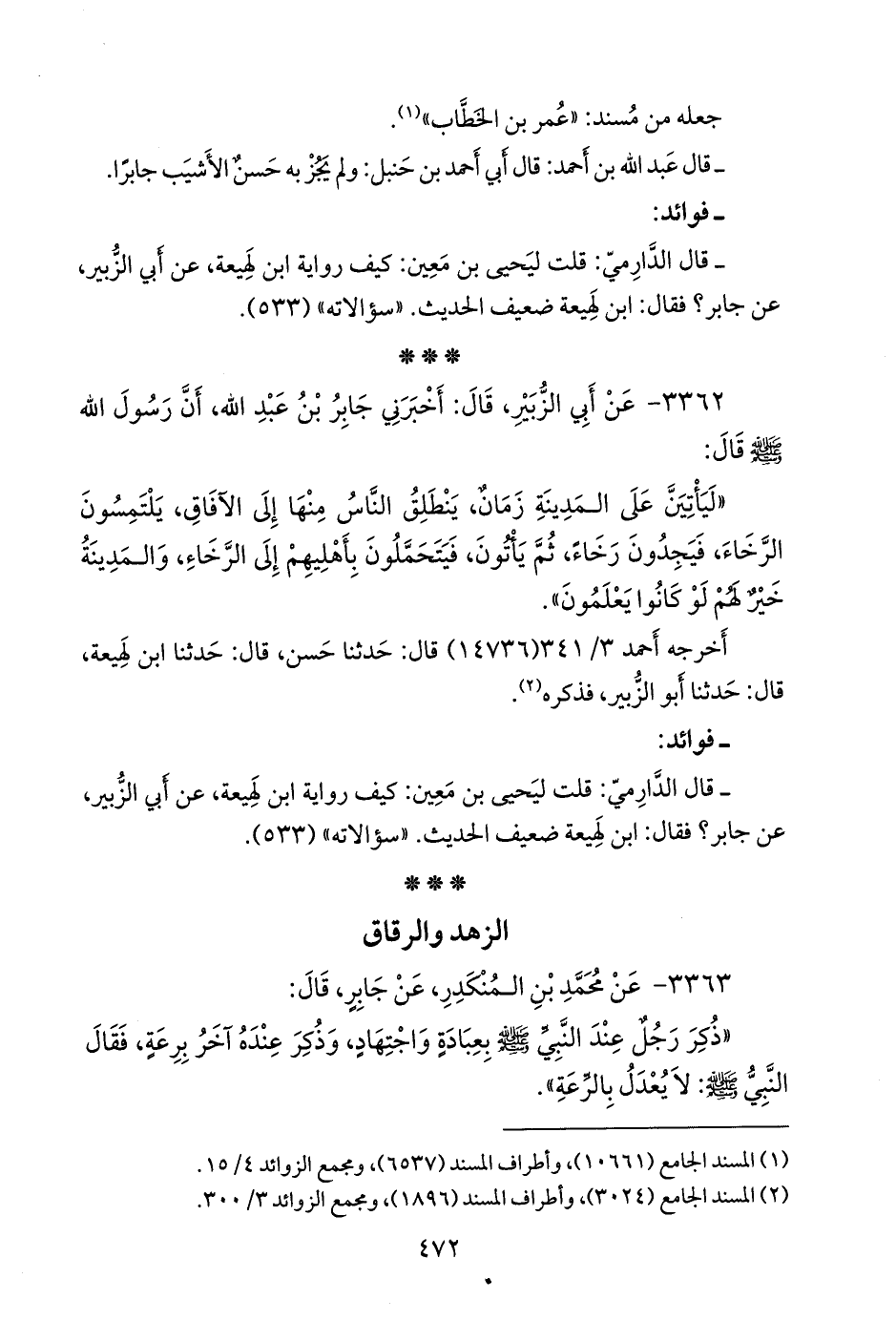 (¬١) المسند الجامع (٣٠٢٤)، وأطراف المسند (١٨٩٦)، ومَجمَع الزوائد ٣/ ٣٠٠.