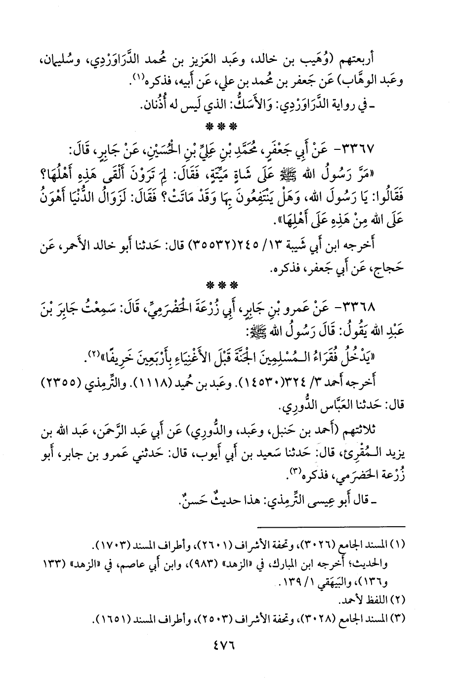 ٣٣٦٧ - عن أبي جعفر، محمد بن علي بن الحسين، عن جابر، قال: