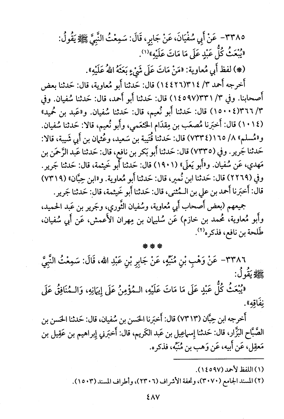 «يبعث كل عبد على ما مات عليه، المؤمن على إيمانه، والمنافق على نفاقه».