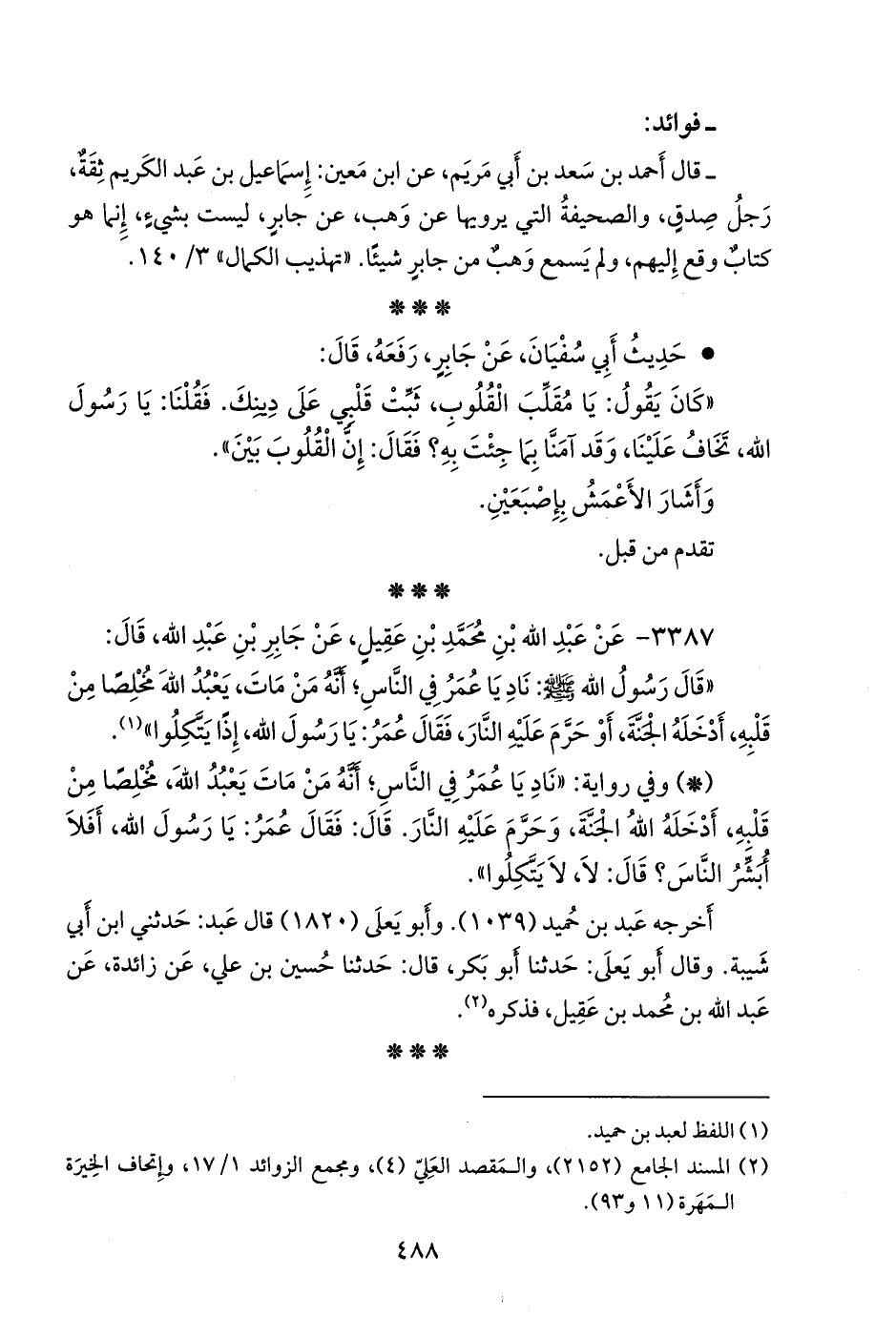 (¬٢) المسند الجامع (٢١٥٢)، والمقصد العَلي (٤)، ومَجمَع الزوائد ١/ ١٧، وإتحاف الخِيرَة المَهَرة (١١ و ٩٣).