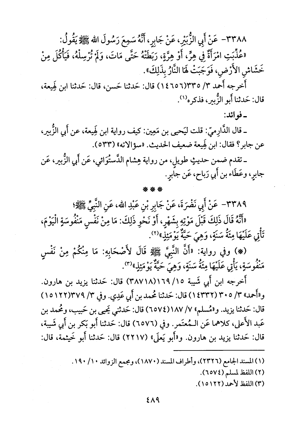 (¬٣) المسند الجامع (٢٨٢٥)، وتحفة الأشراف (٣١٠٦)، وأطراف المسند (٢٠٠٣)، وإتحاف الخِيرَة المَهَرة (٣٧٧٨).