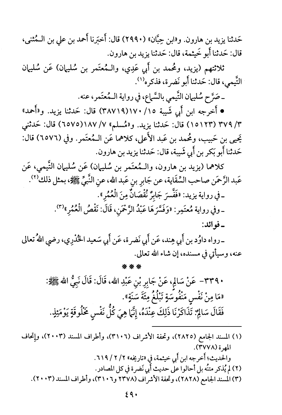 ٣٣٩٠ - عن سالم بن أبي الجعد، عن جابر بن عبد الله، قال: قال نبي الله صَلى الله عَليه وسَلم: