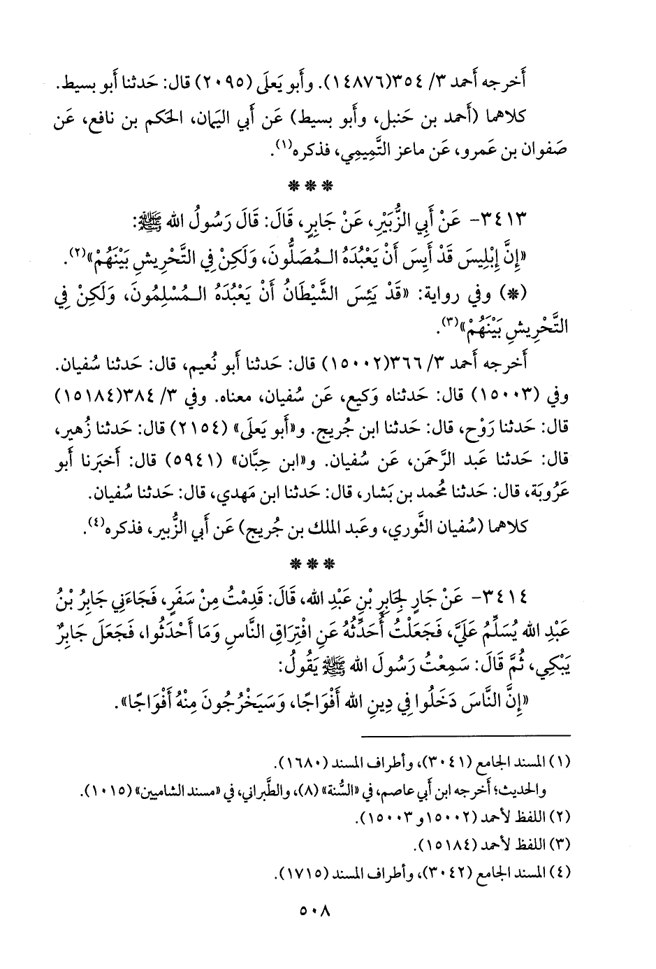 ٣٤١٣ - عن أبي الزبير، عن جابر، قال: قال رسول الله صَلى الله عَليه وسَلم: