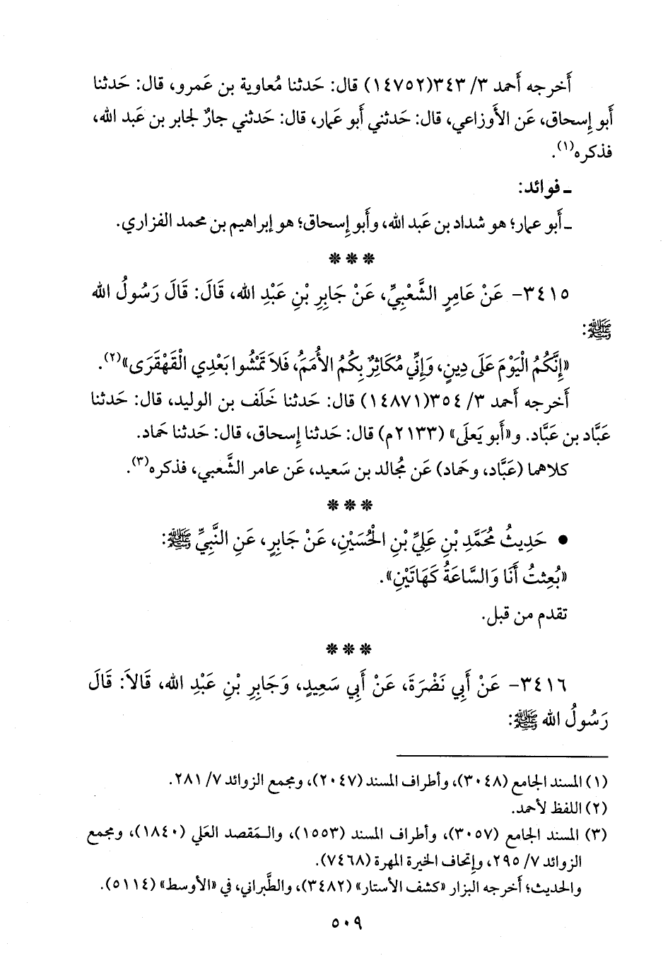 ٣٤١٥ - عن عامر الشعبي، عن جابر بن عبد الله، قال: قال رسول الله صَلى الله عَليه وسَلم: