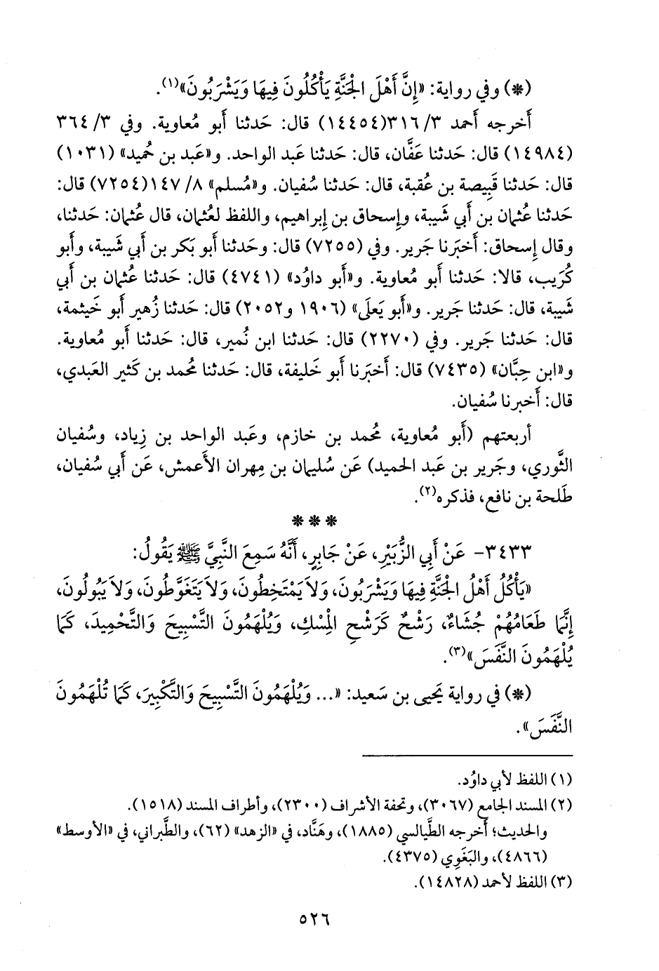 أخرجه أحمد (١٤٤٥٤) قال: حدثنا أَبو معاوية. وفي ٣/ ٣٦٤ (١٤٩٨٤) قال: حدثنا عفان، قال: حدثنا عبد الواحد. و «عَبد بن حُميد» (١٠٣١) قال: حدثنا قَبيصَة بن عُقبة، قال: حدثنا سفيان. و «مسلم» ٨/ ١٤٧ (٧٢٥٤) قال: حدثنا عثمان بن أبي شيبة، وإسحاق بن إبراهيم، واللفظ لعثمان، قال عثمان: حدثنا، وقال إسحاق: أخبرنا جرير. وفي (٧٢٥٥) قال: وحدثنا أَبو بكر بن أبي شيبة، وأَبو كُريب، قالا: حدثنا أَبو معاوية. و «أَبو داود» (٤٧٤١) قال: حدثنا عثمان بن أبي شيبة، قال: حدثنا جَرير. و «أَبو يَعلى» (١٩٠٦ و ٢٠٥٢) قال: حدثنا زهير أَبو خيثمة، قال: حدثنا جَرير. وفي (٢٢٧٠) قال: حدثنا ابن نُمير، قال: حدثنا أَبو معاوية. و «ابن حِبَّان» (٧٤٣٥) قال: أخبرنا أَبو خليفة، قال: حدثنا محمد بن كثير العبدي، قال: أخبرنا سفيان.