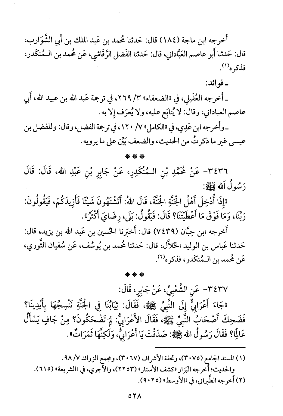 ٣٤٣٦ - عن محمد بن المُنكدِر، عن جابر بن عبد الله، قال: قال رسول الله صَلى الله عَليه وسَلم: