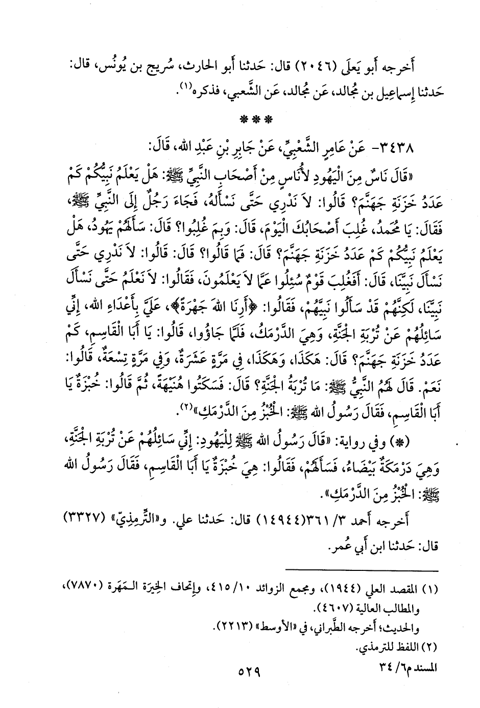 ٣٤٣٨ - عن عامر الشعبي، عن جابر بن عبد الله، قال: